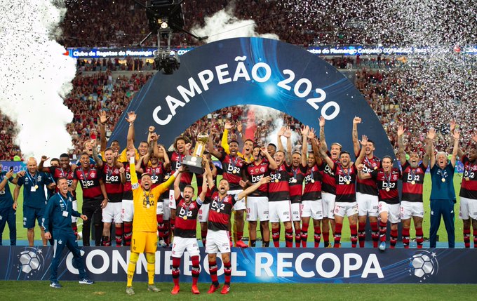 Flamengo vence Independiente Del Valle por 3×0 e é campeão da Recopa Sul-Americana no noite desda quarta-feira(26), no Maracanã. Dominando a partida desde o início, o Rubro-Negro abriu o placar aos 19 minutos, Segovia recuou mal para Pino e Gabigol aproveitou e balançou a rede. Com um jogador a menos, após William Arão ser expulso por entrada com pé no peito de Caicedo, aos 20 minutos, o Flamengo conseguiu controlar bem mesmo com a perda. Mas só aos 16 minutos do segundo tempo, quando Gabigol disparou e ao chegar na linha de fundo cruzou rasteiro, Gerson foi quem apareceu para ampliar. E teve mais expulsão mas do lado equatoriano, Cabeza deu entrada de sola em Léo Pereira e recebeu o cartão vermelho. E já nos acréscimos, Vitinho avançou pela lateral e tocou para Gerson de cara para o gol, bater colocado e fechar a noite vitoriosa. A Recopa é a terceira Taça conquistada pela equipe comandada por Jorge Jesus neste ano.
